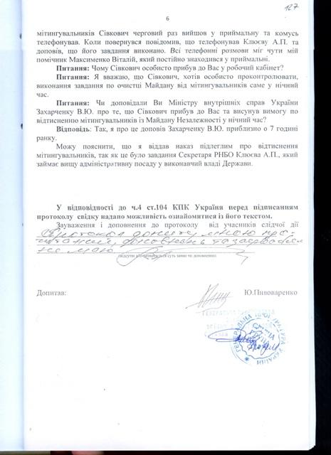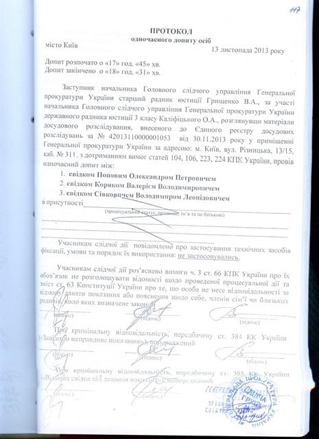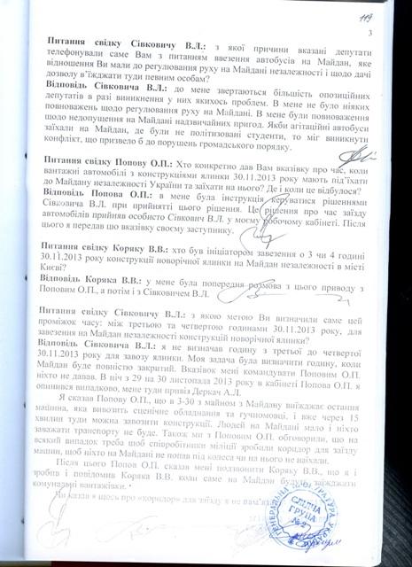 "Украинской правде" удалось достать часть протоколов заместителя секретаря СНБО Владимир Сивкович, начальника киевской милиции Валерия Ковша и председателя Киевской городской госадминистрации Александра Попова.