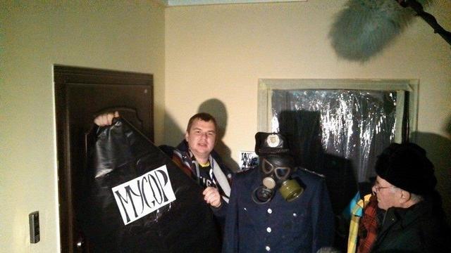 Под дверями министра они символически выбросили куклу милиционера в мусорный мешок, призвав главу МВД добровольно уйти в отставку из-за силового разгона Евромайдана. «Иначе народ вам этого не простит и выбросит вас как мусор на свалку» - заявили пикетчики, лова которых приводит ЛИГАБизнесИнформ.