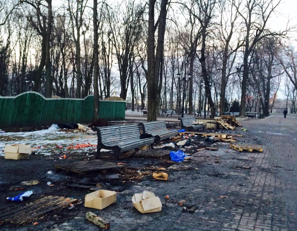 Организовали несколько добровольцев с Майдана, чтобы убрать мусор и бутылки из-под водки, которые оставил в Мариинском парке антимайдан. По дороге в Мариинский парк участникам экологической акции пришлось прорвать кордон милиции, которая почему-то не хотела пропускать нас. Взбудоражили несколько "беркутовцев", которые с разных сторон побежали окружать нас. Мы же - хладнокровно убрали мусор, положили его в мешки и мирным шествием отправились обратно", - написал Парубий.
