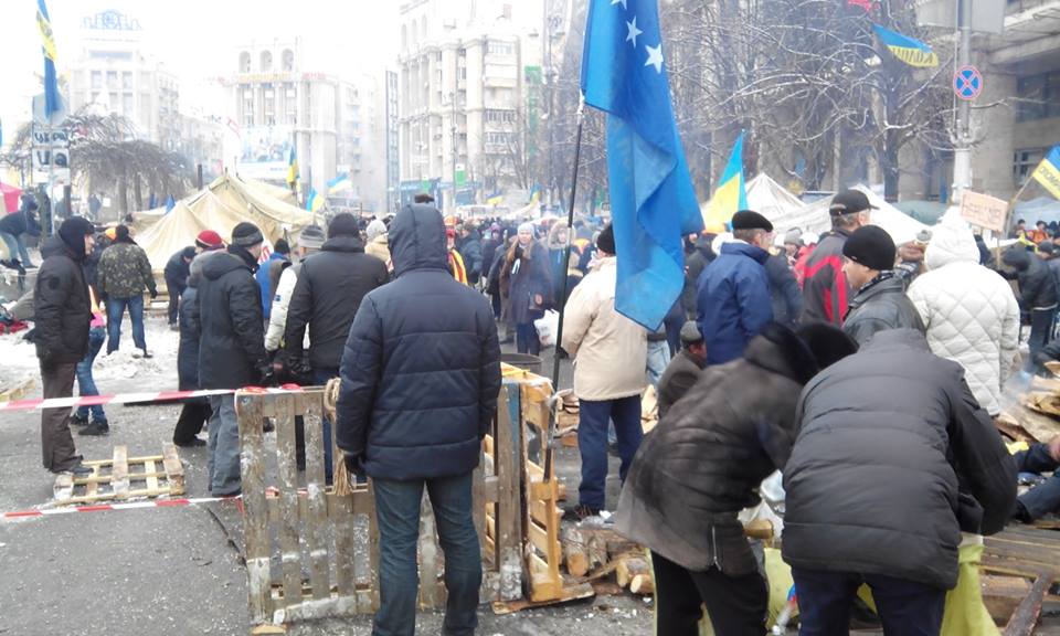 Сегодня около 50 человек пытались разобрать баррикады, которые построили евроактивисты возле ЦУМа на Крещатике.