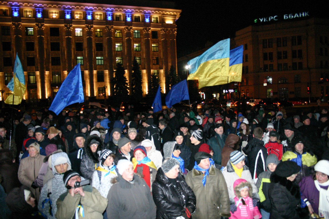 На традиционном ежевечернем митинге Евромайдана в Харькове отключили свет.