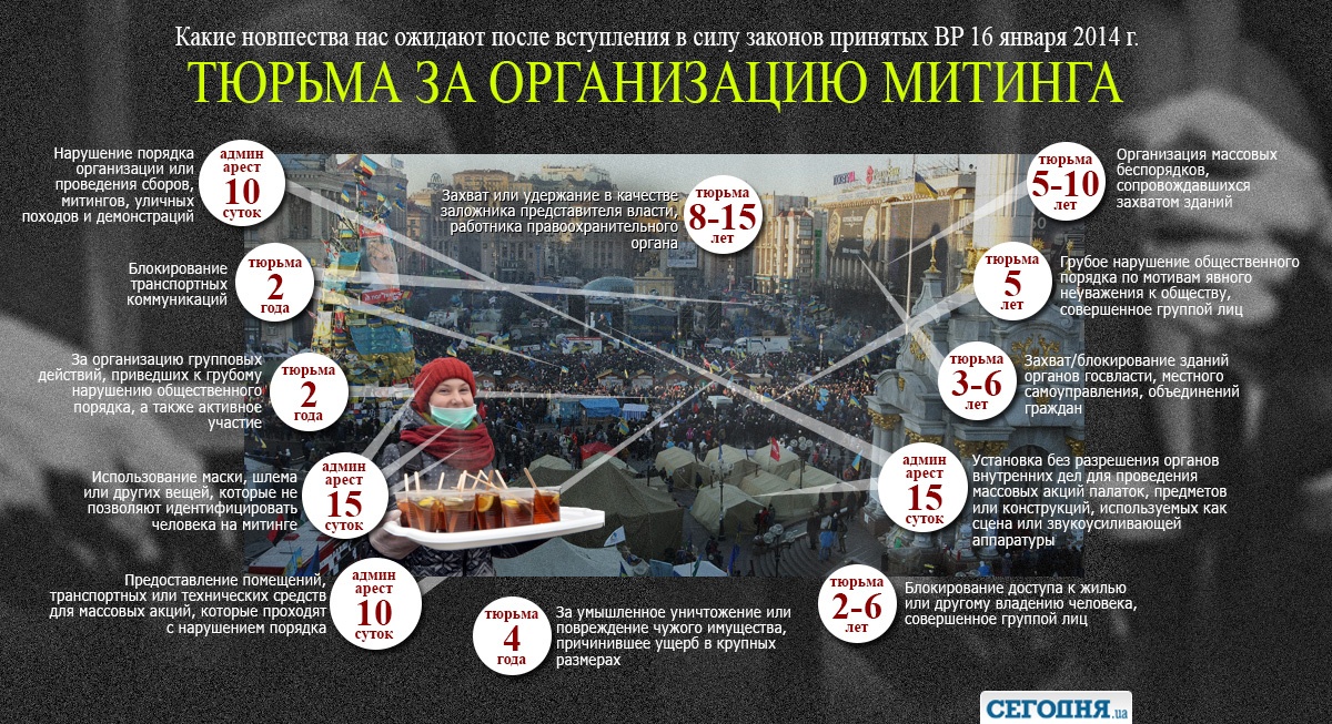 Как пишет segodnya.ua, согласно новому закону, принятому в Верховной Раде, активистов будут более строго наказывать за нарушения во время массовых акций.