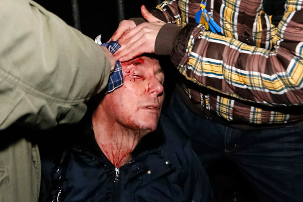 «Но не возле нас, а возле пешеходного перехода. Почему? Это вопрос. Возможно, ответ мы когда-то узнаем. Явно Юрий Витальевич что-то не договаривает. Не исключено, что в него попали камнем свои же или кто-то отпихнул. Насколько нам было видно, он упал не один. Их было несколько человек. Возможно, с охраной. Не знаю. Нам не было видно. Все произошло в 5 метрах от нас. Падал он за спинами журналистов, которые там стояли. Они даже не смогли его заснять, они друг у друга спрашивали, что там случилось. Могу сказать точно – были обстоятельства, о которых нам пока неизвестно», - отметил замначальника «Беркута» Киева.