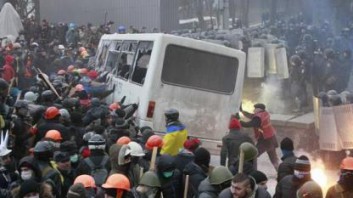 Ранее стало известно, что в центре Киева начались столкновения между полицией и демонстрантами. Полиция применила слезоточивый газ и свето-шумовые гранаты.