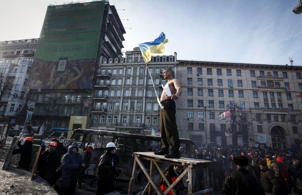 За спинами сотрудников МВД (их около 2 тысяч человек на Грушевского и в Мариинском парке) виден беркут около 150 человек. Некоторые митингующие забрались на автобус с флагом Украины. Бойцов из числа митингующих сейчас мало.