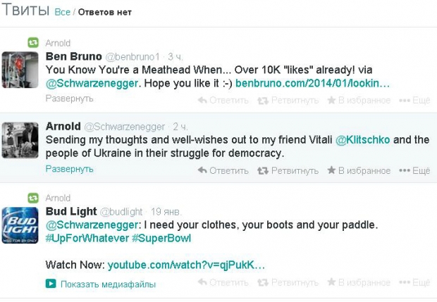 В социальной сети актер написал:"Посылаю свои добрые пожелания моему другу Виталию Кличко и украинским людям в их борьбе за демократию. Мысленно с вами".