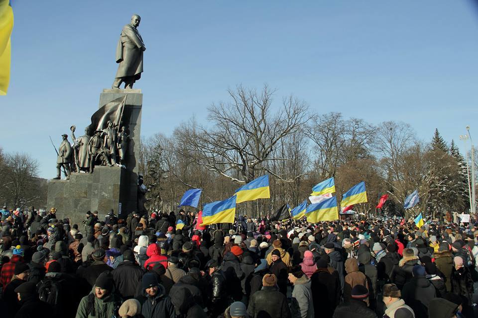 После окончания митинга его участники в сопровождении «ультрас» «Металлиста», взявших на себя охрану местного Евромайдана, прошли к метро.