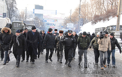 Работники 14 дипломатических представительств иностранных государств в Украине в сопровождении руководителей подразделений МВД посетили места дислокации работников органов внутренних дел, которые стоят в кордоне на улице Грушевского в Киеве.