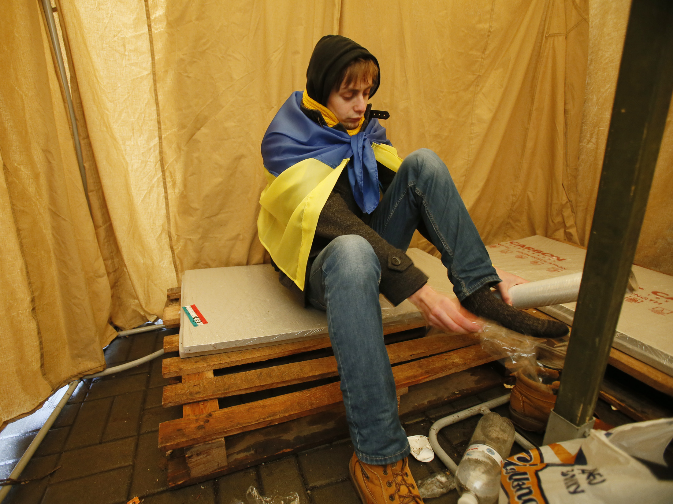 «Несмотря на рекордно низкие температуры, жизнь на Майдане продолжается в обычном режиме, хотя и пришлось проводить специальные консультации по условиям обслуживания биотуалетов, вывозу бытовых подходов, хранению и складированию воды, работы генераторов и т.п.», – сказал г-н Кубив.
