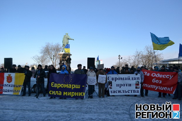 В воскресенье, 2 февраля, в Одессе состоялась очередная масштабная акция горожан против нынешней власти. Традиционное народное вече у памятника Ришелье переросло в Евромарш.