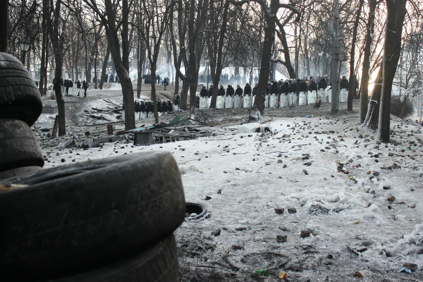 ТРЕВОЖНЫЙ ВЕЧЕР. Ближе к вечеру ситуация на Грушевского, однако, стала накаляться. Количество протестующих на баррикадах увеличилось, как и количество противостоящих им бойцов Внутренних войск. Но на момент верстки номера силовые действия не предпринимала ни одна из сторон.