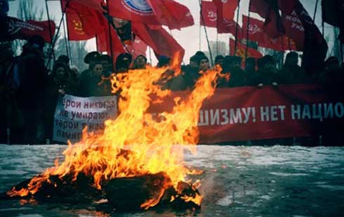 8 февраля в Запорожье состоялся антифашисткий марш с митингом у стен обладминистрации, в конце которого по команде народного депутата от КПУ Александра Зубчевского сожгли чучело Степана Бандеры.