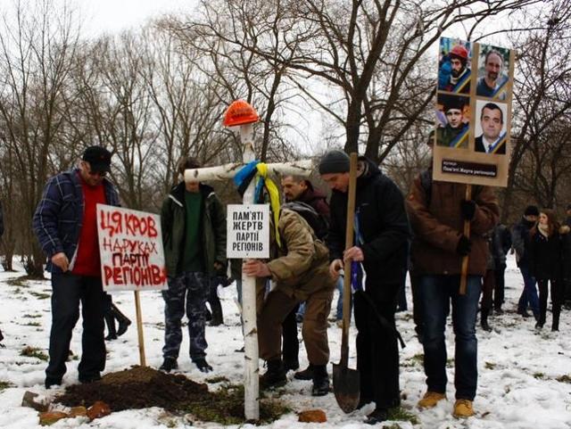 8 февраля, в сквере по ул. Выговского, напротив рынка «Южный» во Львове, установили березовый крест памяти жертв Партии регионов. Участие в акции приняло около трех десятков человек.
