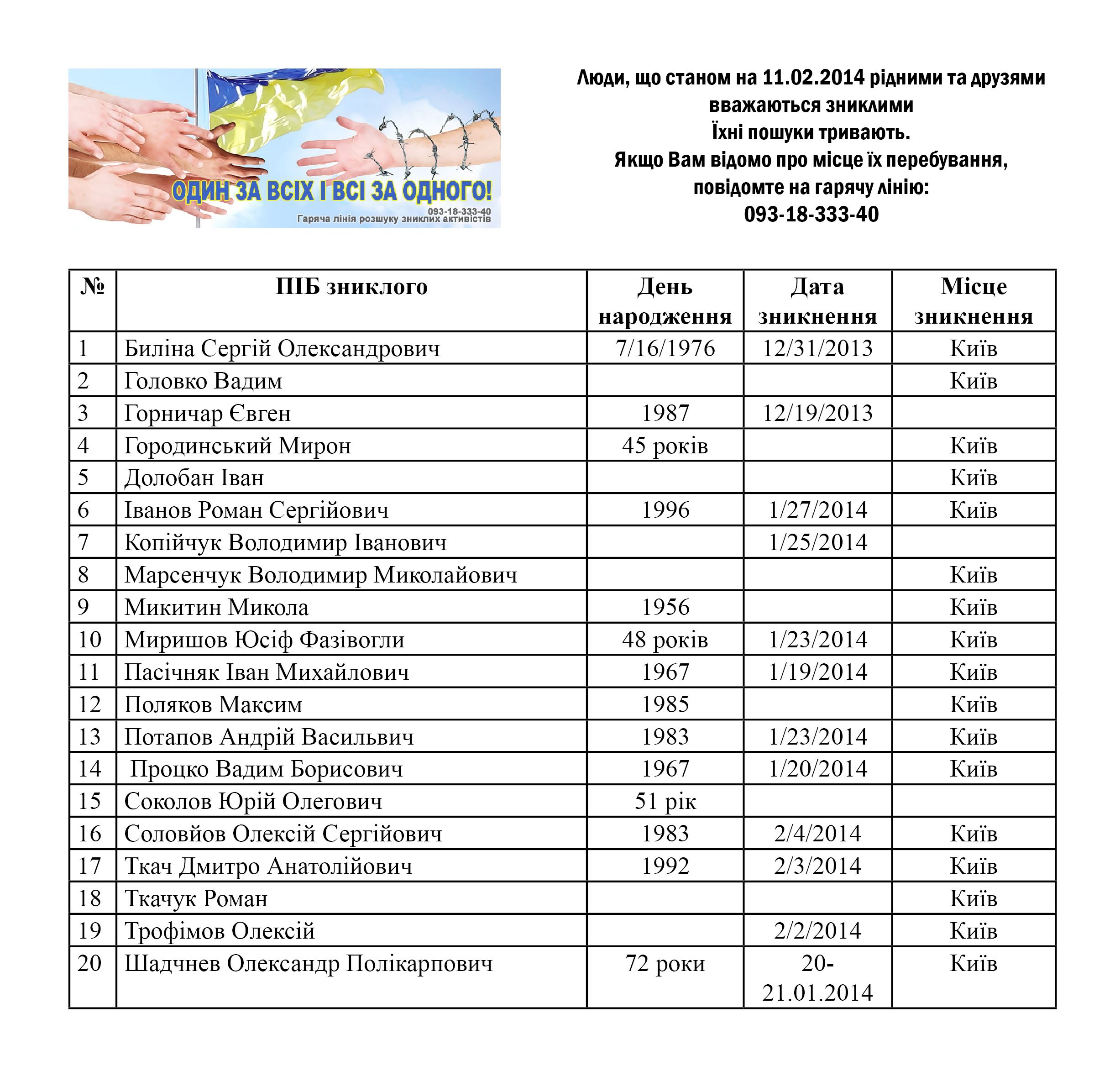 За сутки найдены еще трое пропавших участников Евромайдана (СПИСОК)