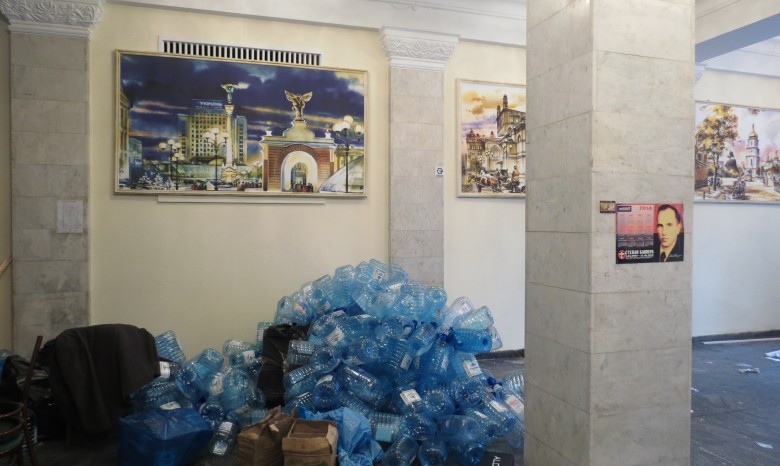 За время проживания активистов в киевской мэрии, по данным КП "Госкомобслуживание", оттуда пропало имущество на сумму 500 тысяч гривен.