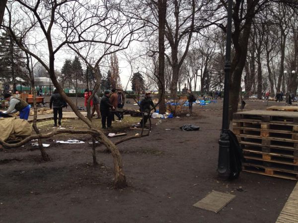 Активисты Евромайдана начали уборку Мариинского парка (ФОТО)