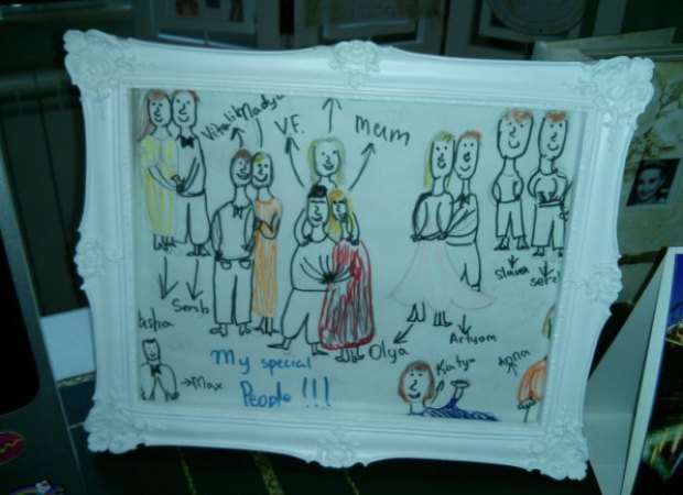 А журналист Дмитрий Гнап добавляет, что в "Хонке" постоянно жили трое - Янукович, Полежай и ее маленькая дочь. При этом на рисунке Януковича она обозначила как "V.F.". По отчеству девочка - Егоровна.