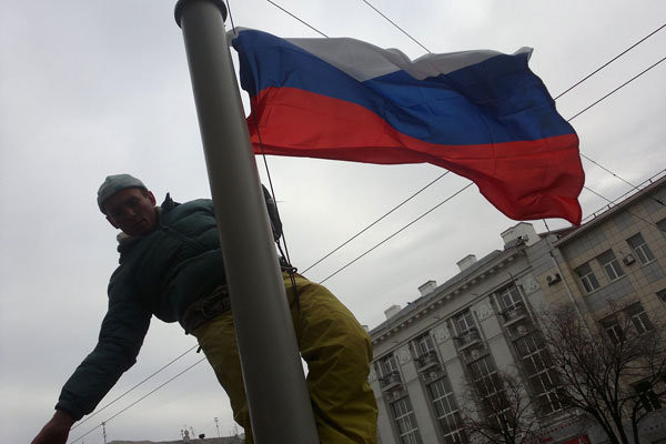 На флагштоке возле Харьковского горсовета вывесили флаг России