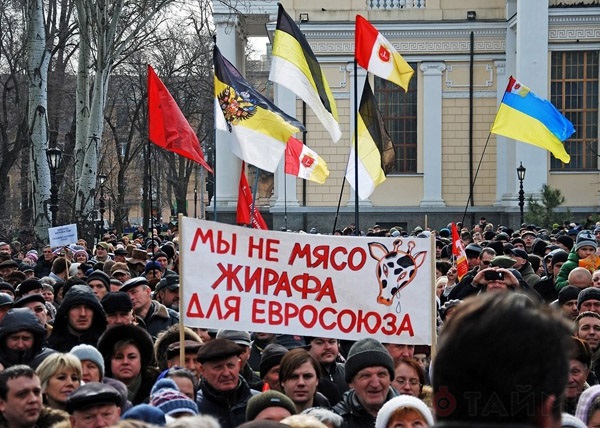 Кроме того митингующие требуют предоставления русскому статуса второго государственного языка, федерализации страны и т.д.