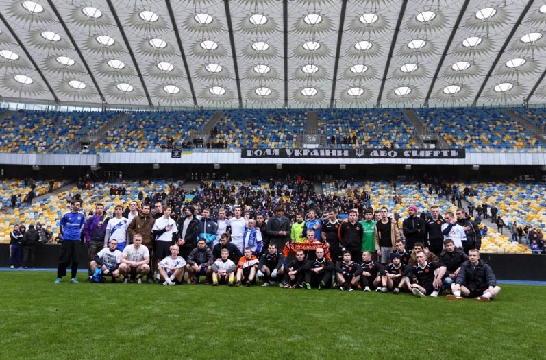 2 марта 2014, в день, когда должна была состояться встреча динамовцев и «горняков» в рамках чемпионата Украины, - на изумрудный газон киевской арены вышли фанаты клубов.