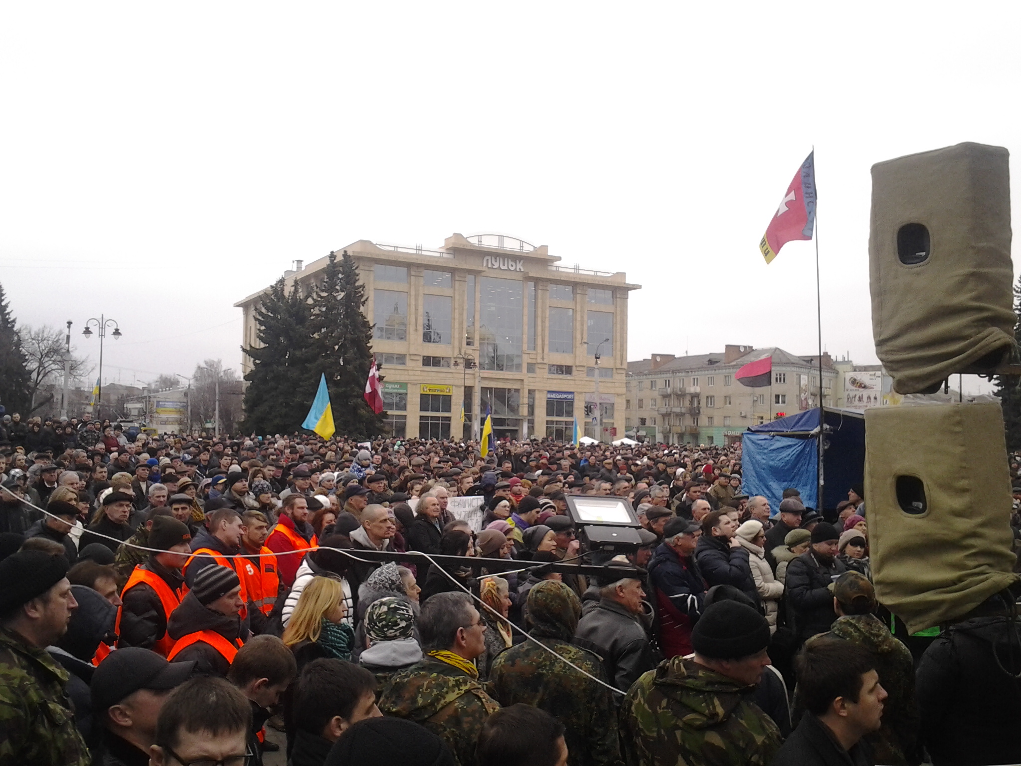 Более 7000 жителей Луцка приняли участие в народном вече «Сохраним Украину», протестуя против военной агрессии России в Крыму. Основной темой веча стала российская военная интервенция против Украины.
