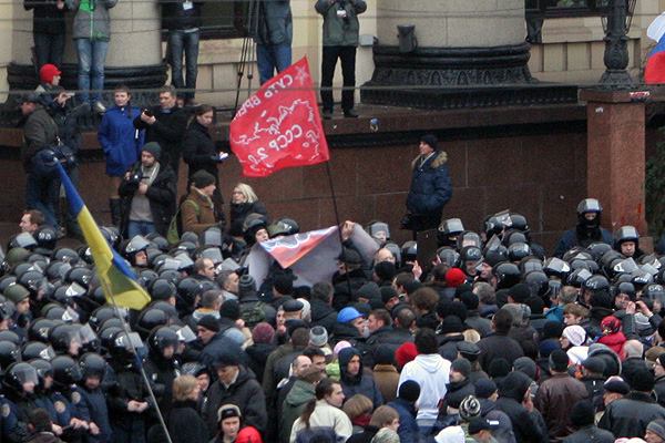 Активисты готовы даже идти в сессионный зал и срывать процесс представления нового губернатора. В руках они держат плакаты «Беркут - защитники Украины от фашистов».