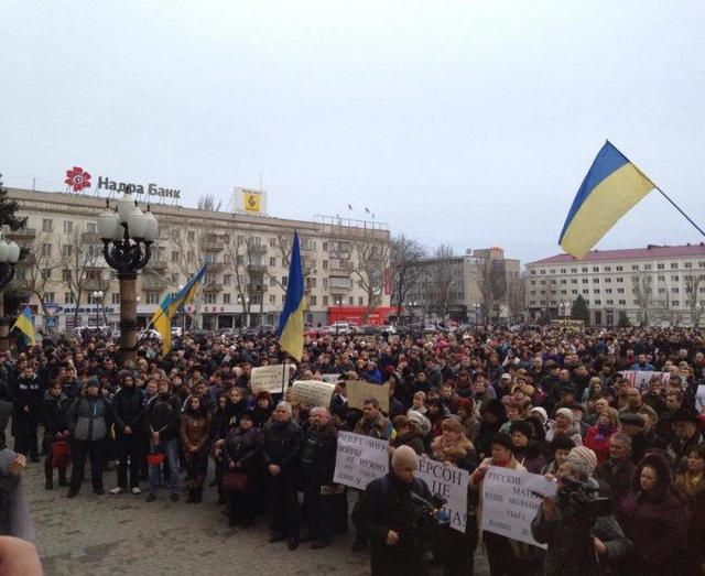 В Херсоне на площади Свободы проходит митинг за целостность Украины и против вмешательства президента России Владимира Путина во внутренние дела Украины.