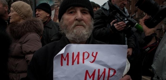 Первой на митинге выступила депутат ЗакСа Ирина Комолова. Она заявила, что не является пацифистом и поддерживает право народа на восстание. "Но может ли принести освобождение коррумпированное государство, в котором преступника амнистируют, а мальчишку, ударившего полицейского пластиковой бутылкой, оставляют гнить в тюрьме?.. Поэтому в данном случае я выступаю против любого военного вмешательства. Россия как государство не может принести освобождение. Его Украине может дать только солидарность российского народа", - подчеркнула депутат.