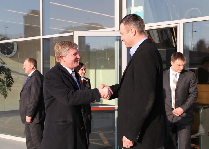 Известный спортсмен и политик Виталий Кличко в ходе своего визита в Донецк посетил стадион «Донбасс Арена», где встретился с президентом ФК «Шахтер».