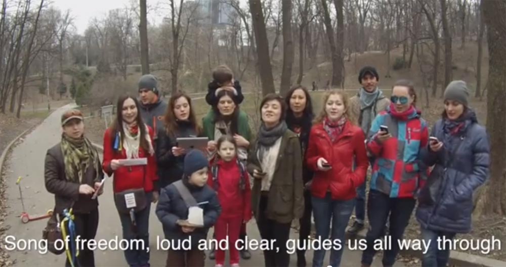 Активисты Майдана спели гимн Украины на английском языке (ВИДЕО)