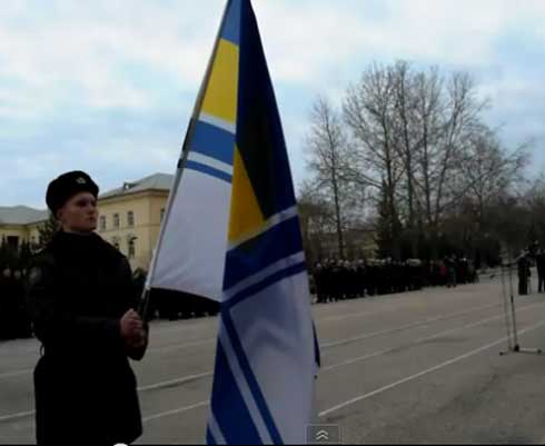 Как можно увидеть на видео, размещенном в социальных сетях, один из курсантов снимал флаг ВМС Украины со слезами на глазах.