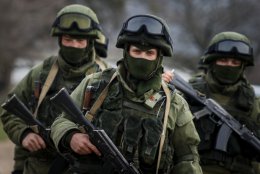 Сепаратисты выставили вперед детей и периодически скандируют "Россия". Украинские военные срезали флагшток, чтобы "титушки" не смогли поднять российский флаг, если базу все-таки возьмут штурмом.