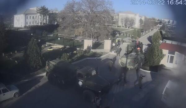"17:00. Штурм Бельбека. В ходе штурма на территорию воинской части прорвались представители самообороны Крыма. Ворота в часть проломлены с помощью БТРа", - пишет Селезнев.
