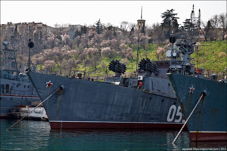 От нее осталась 11-я бригада противолодочных кораблей, в которую вошли ракетный крейсер "Москва", большой противолодочный корабль "Керчь", сторожевые корабли "Сметливый", "Ладный" и "Пытливый".