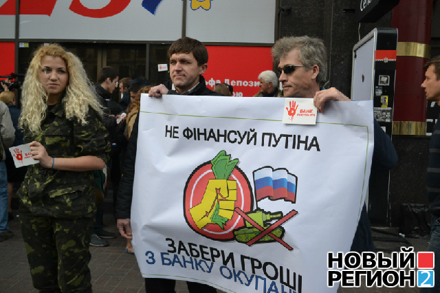 Активисты пикетируют филиалы российских банков (ВИДЕО)