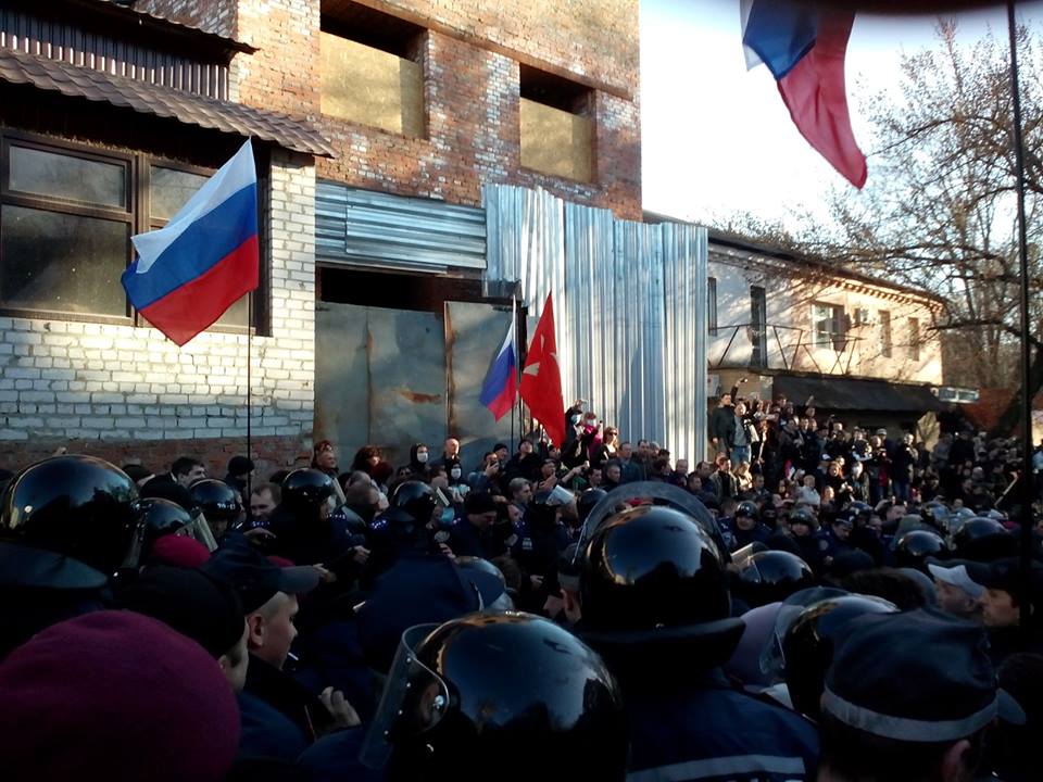 Столкновение произошло после того, как к участникам пророссийского шествия, находившимся возле памятника Шевченко, подбежали двое людей и крикнули, что внизу находятся активисты "Правого сектора". После этого колонна двинулась в сторону театра, где и произошло столкновение.
