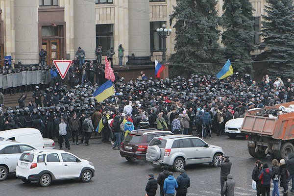 Около двух тысяч пророссийских активистов вновь вышли на митинг под здание Харьковской областной администрации.