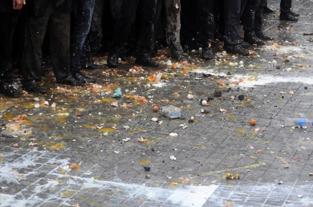 Сепаратистов в Запорожье 13 апреля целый день осаждали и не подпускали к ним подкрепление, закидывая яйцами, мукой и пакетами с молоком.