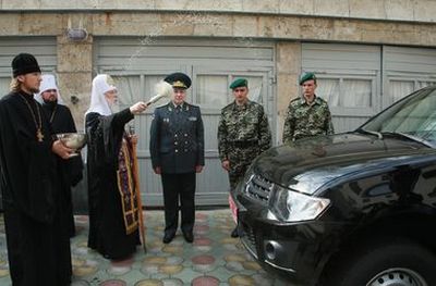 Патриарх Филарет подарил пограничникам освященные авто и экипировку