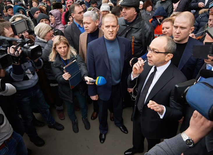 Кернес пообещал вернуть российские каналы и попросил митингующих разойтись