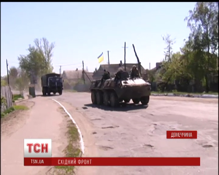 На Харьковской трассе украинские солдаты копают окопы и обустраивают пулеметные гнезда. Они тщательно осматривают грузовики, ищут оружие в багажниках легковых автомобилей. Украинские военные передвигаются по дорогам только с поднятым национальным флагом, спецназовцы не остаются на месте, постоянно меняют дислокацию. Военные также продолжают на вертолетах патрулировать Славянск, сбрасывают жителям пачками инструкции, как себя вести в городе.