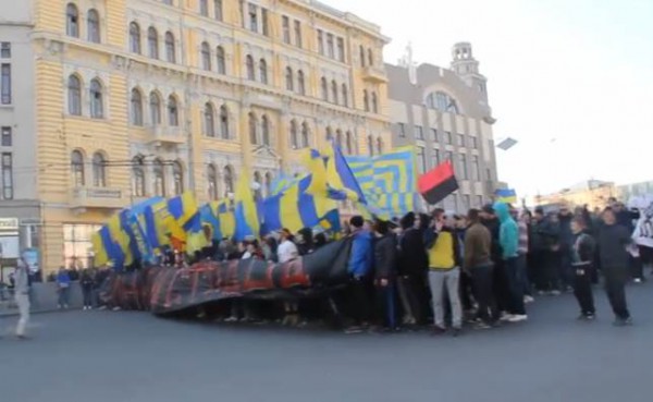 В Харькове болельщики "Металлиста" и "Днепра" проводят шествие в знак единства Украины