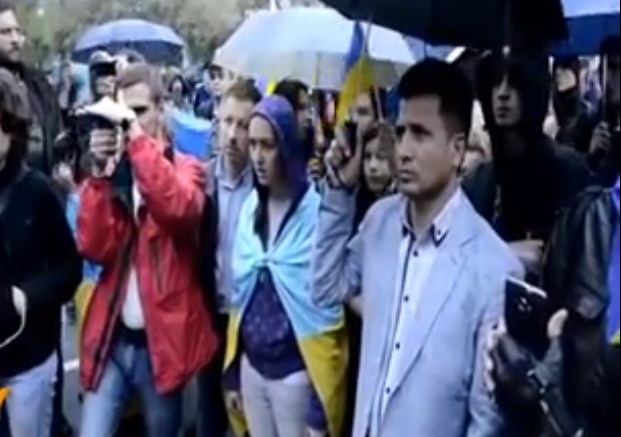 Как сообщает Цензор.НЕТ со ссылкой на Радио Свобода, на площадь, где проходил митинг под украинскими флагами, пришли неизвестные люди.