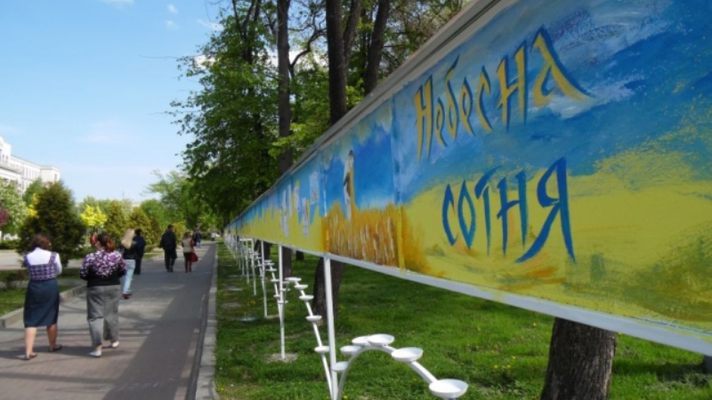 Шестидесятиметровый стенд памяти Небесной сотни начали создавать в эти выходные усилиями местной общины.