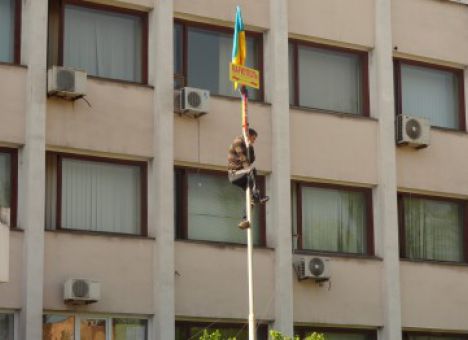 Вместо украинского флага горсовета вывесили флаг «Донецкой народной республики» и России.