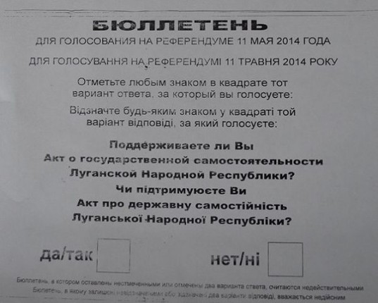 «Поддерживаете ли вы Акт о государственной самостоятельности Донецкой Народной Республики?» или «Луганской народной республики?».
