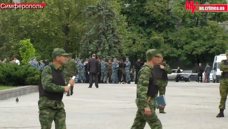 Кроме того около двухсот человек, в основном сотрудники ОМОН, выстроились возле Совета министров Крыма.