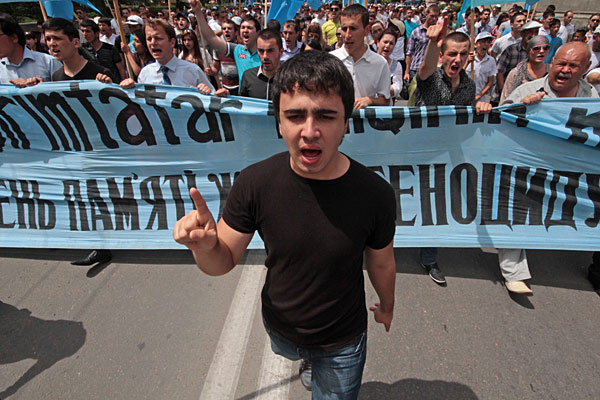 По данным журналистов, улицами Симферополя крымских татар сопровождали ОМОНовцы, а над их головами летали военные вертолеты.