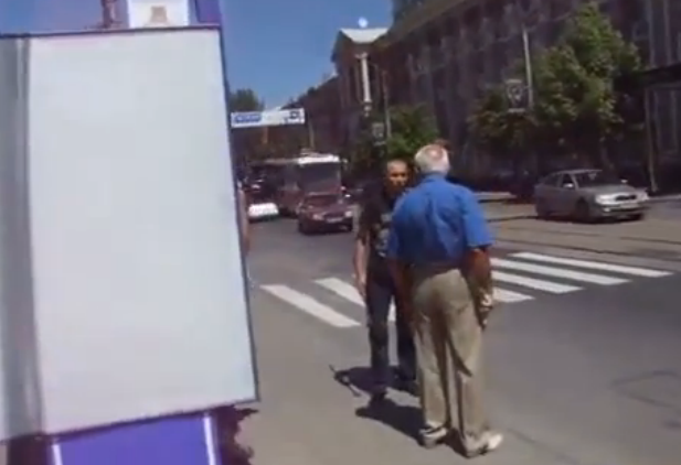 Сторонники самопровозглашенной Донецкой народной республики пытаются помешать жителям города, включая водителей автомобилей, выступить в поддержку единства Украины. Демонстрирующим украинский флаг или сигналящим в клаксон угрожают молотками.