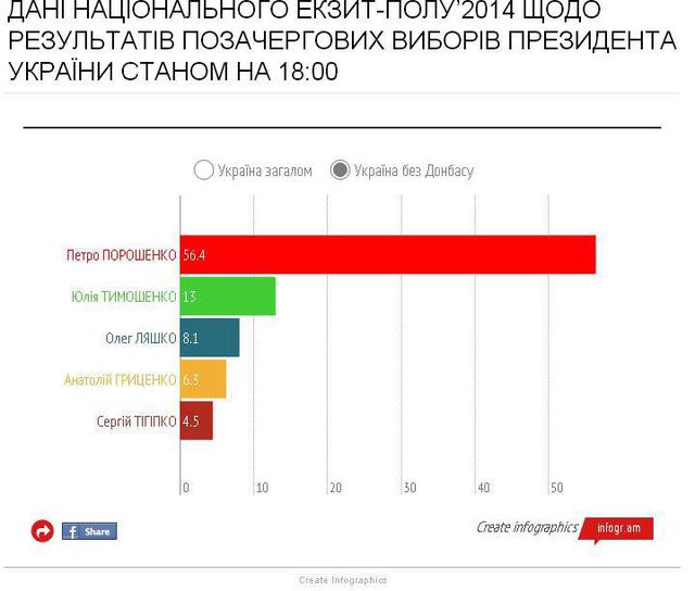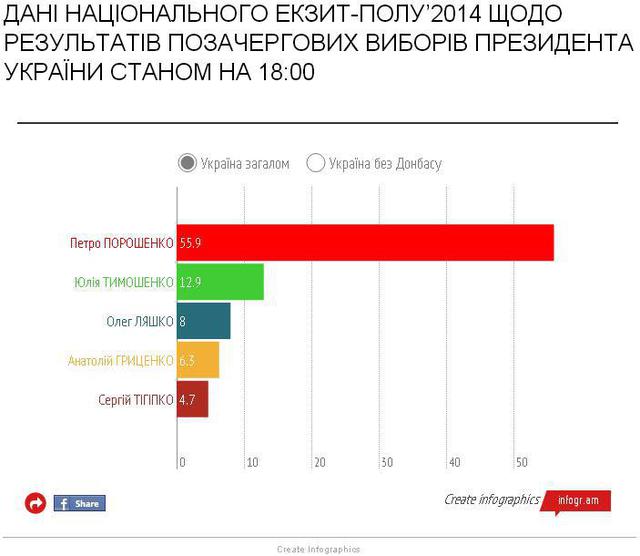 Данные Национального экзит-пола 2014 по результатам внеочередных выборов Президента Украины по состоянию на 18:00: